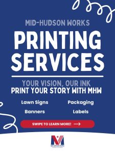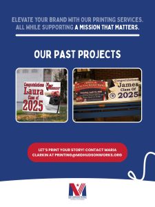 Back Mid Hudson Works Printing Solutions December 23, 2025 Did you know Mid-Hudson Works offers printing solutions? From lawn signs to labels, choose Mid-Hudson Works to print your story, all while supporting a mission that matters. Contact us at [email protected] to get started today! #printing #midhudsonworks