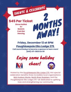 Salute & Celebrate is just 2 months away! Join us Friday, December 12, 2025, from 6–10 PM at the Poughkeepsie Elks Club Lodge 275 for an unforgettable evening!